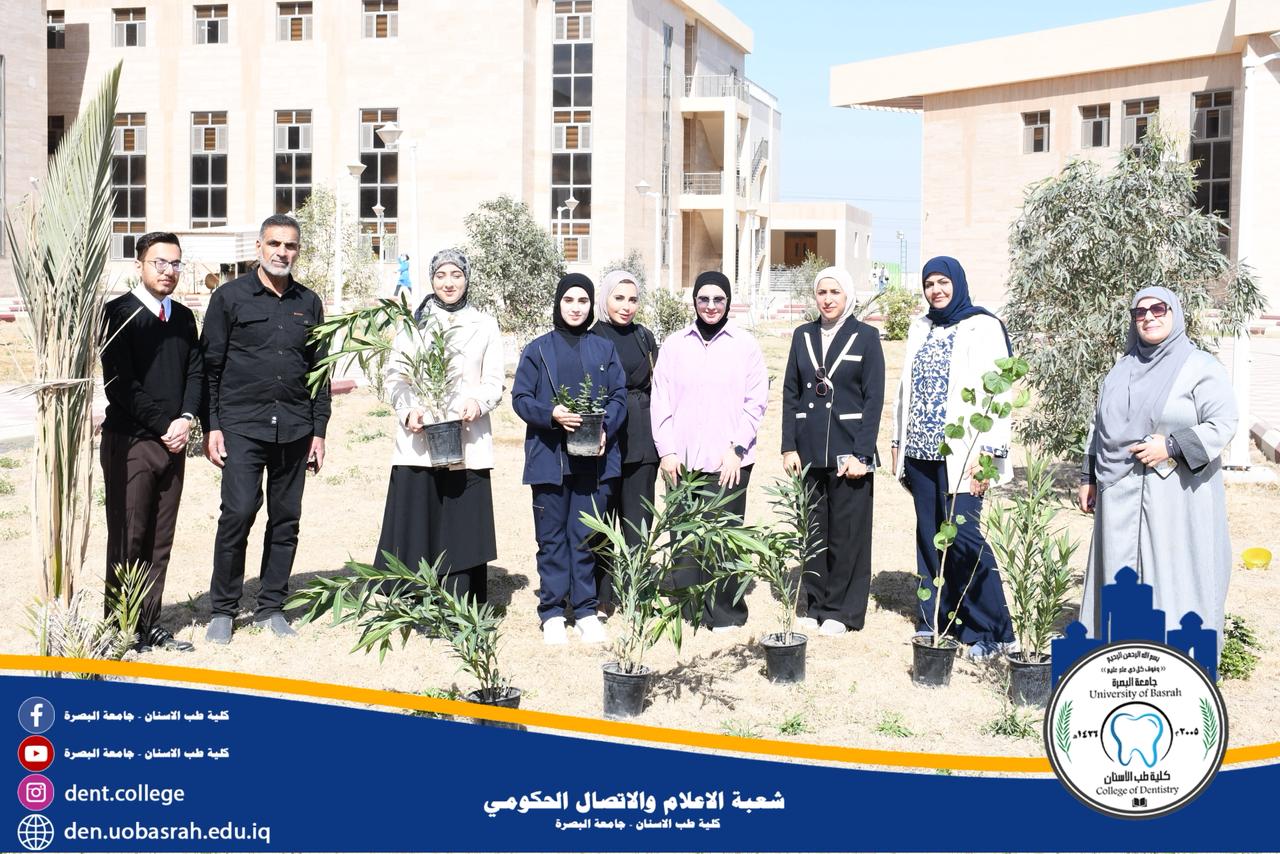 اقامت كلية طب الأسنان بجامعة البصرة، حملة تشجير داخل أروقة وحدائق الكلية، بمشاركة مجموعة من تدريسيي وطلبة الكلية في خطوة تعكس التزامها بمبادئ الاستدامة والحفاظ على البيئة الجامعية.