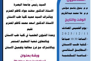 ستقيم كلية طب الاسنان وبالتعاون مع وحدة التعليم المستمر ورشة علمية بعنوان (Bacterial cultivation , diagnosis , susceptibility testing , counting and interpretation)