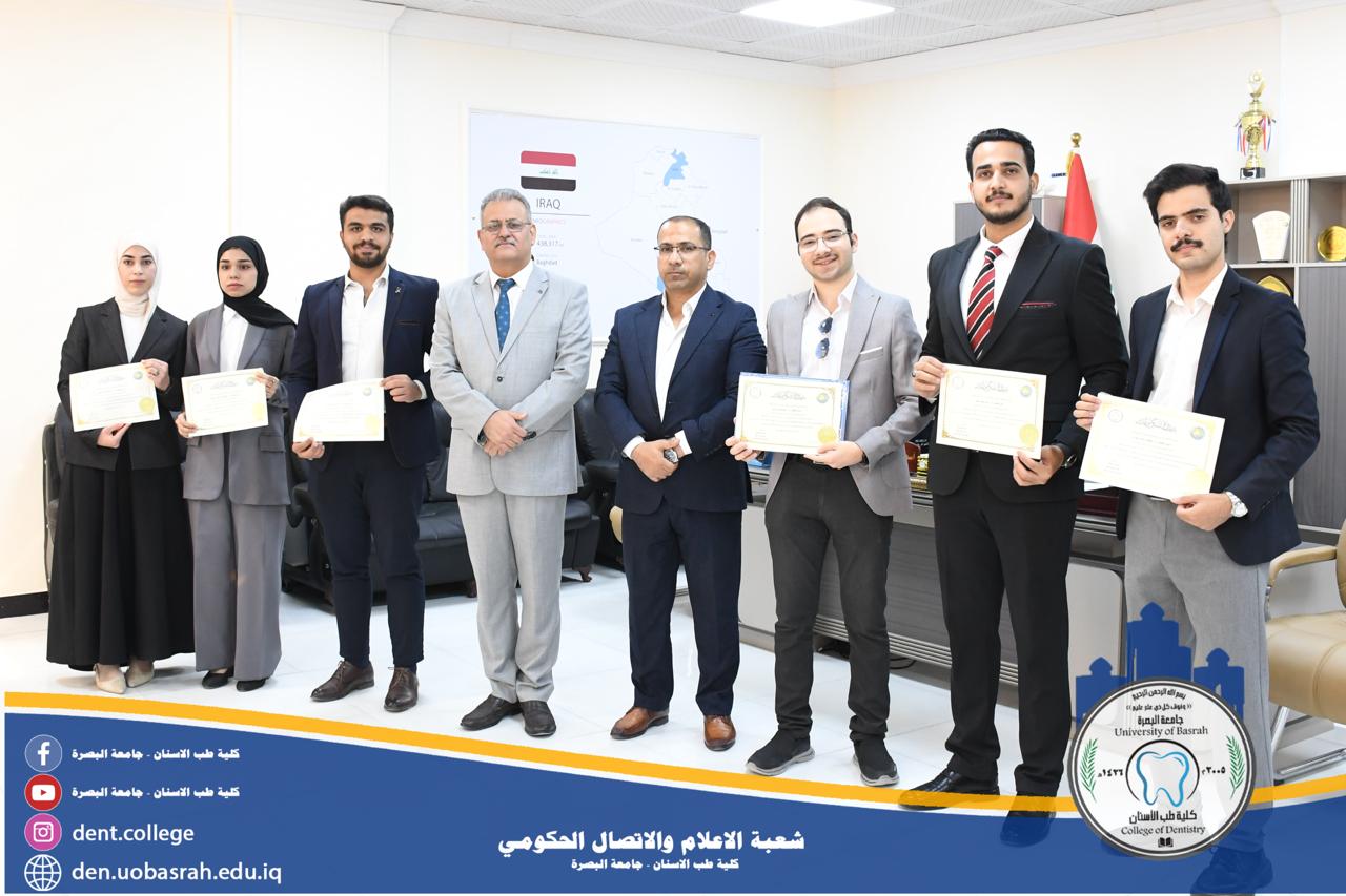 كرّم عميد كلية طب الأسنان بجامعة البصرة الأستاذ الدكتور أسعد محمد كاظم مجموعة من طلبة الكلية بشهادات تقديرية، تثمينًا لجهودهم المتميزة في نشر بحث علمي رصين في مجلة Journal of Fluorescence العالمية، التابعة لدار النشر Springer Nature، بعنوان: