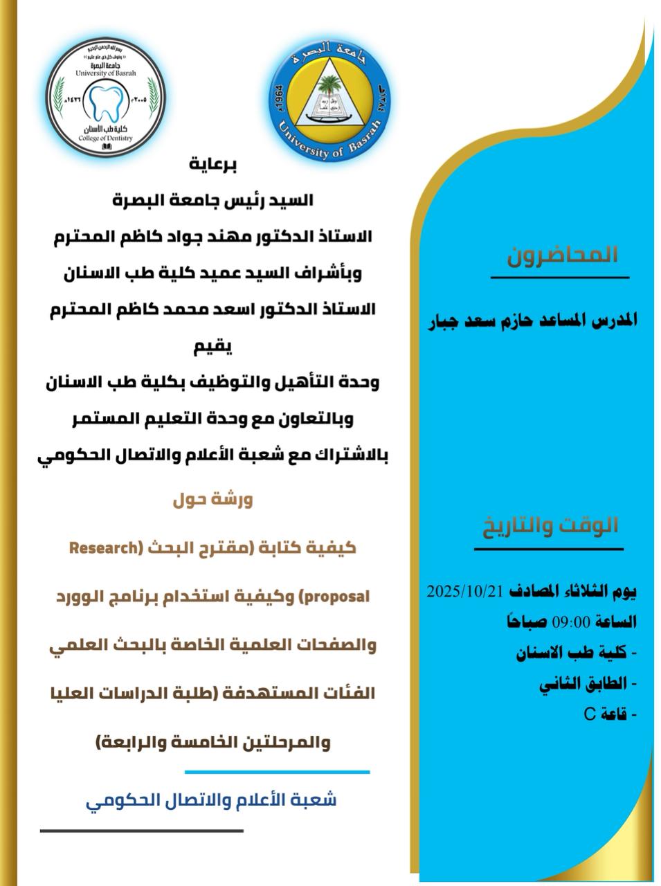 تقيم كلية طب الاسنان ورشة عمل عن كيفية كتابة البحوث العلمية