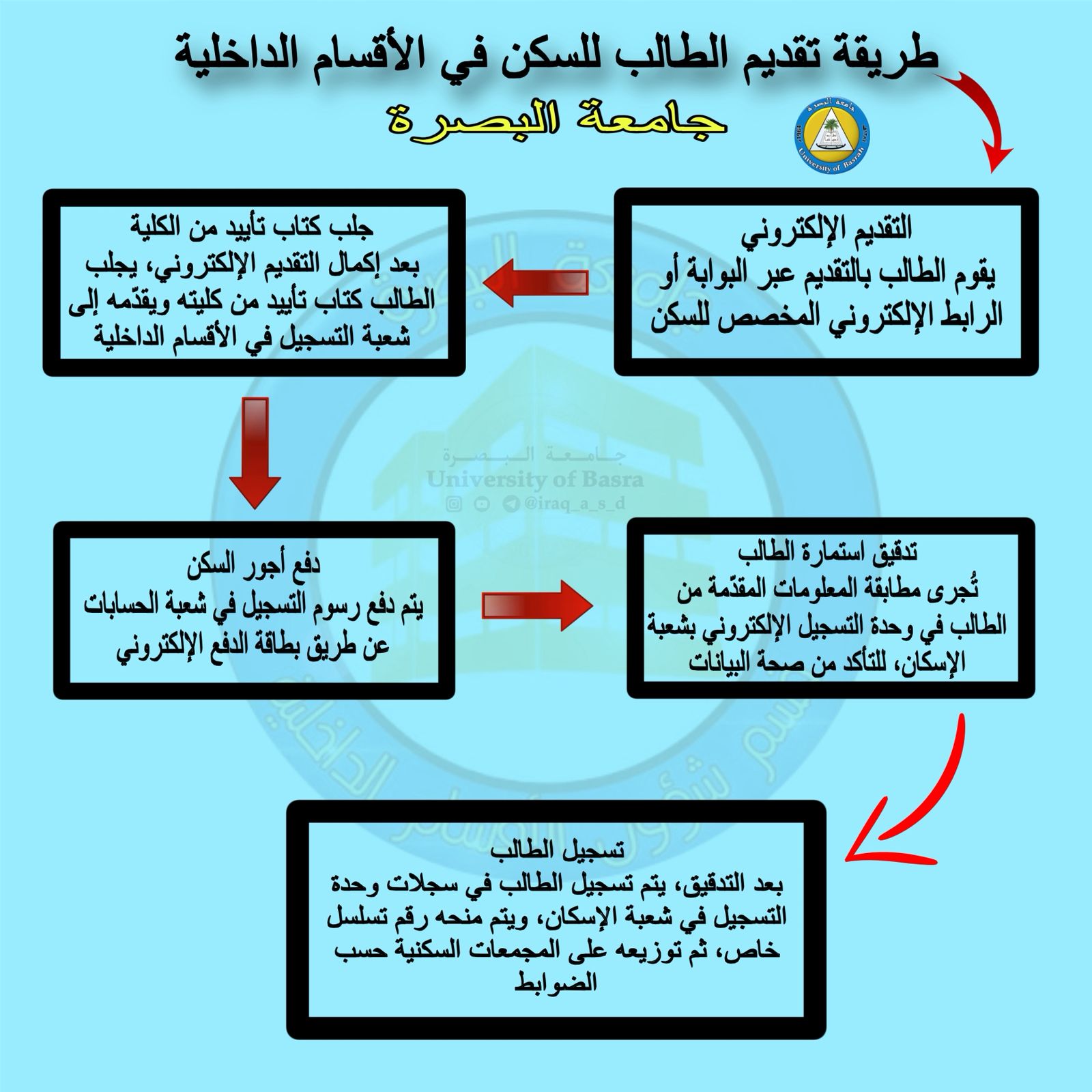 اعلان عن طريقة تقديم الطالب على السكن في الاقسام الداخلية بجامعة البصرة