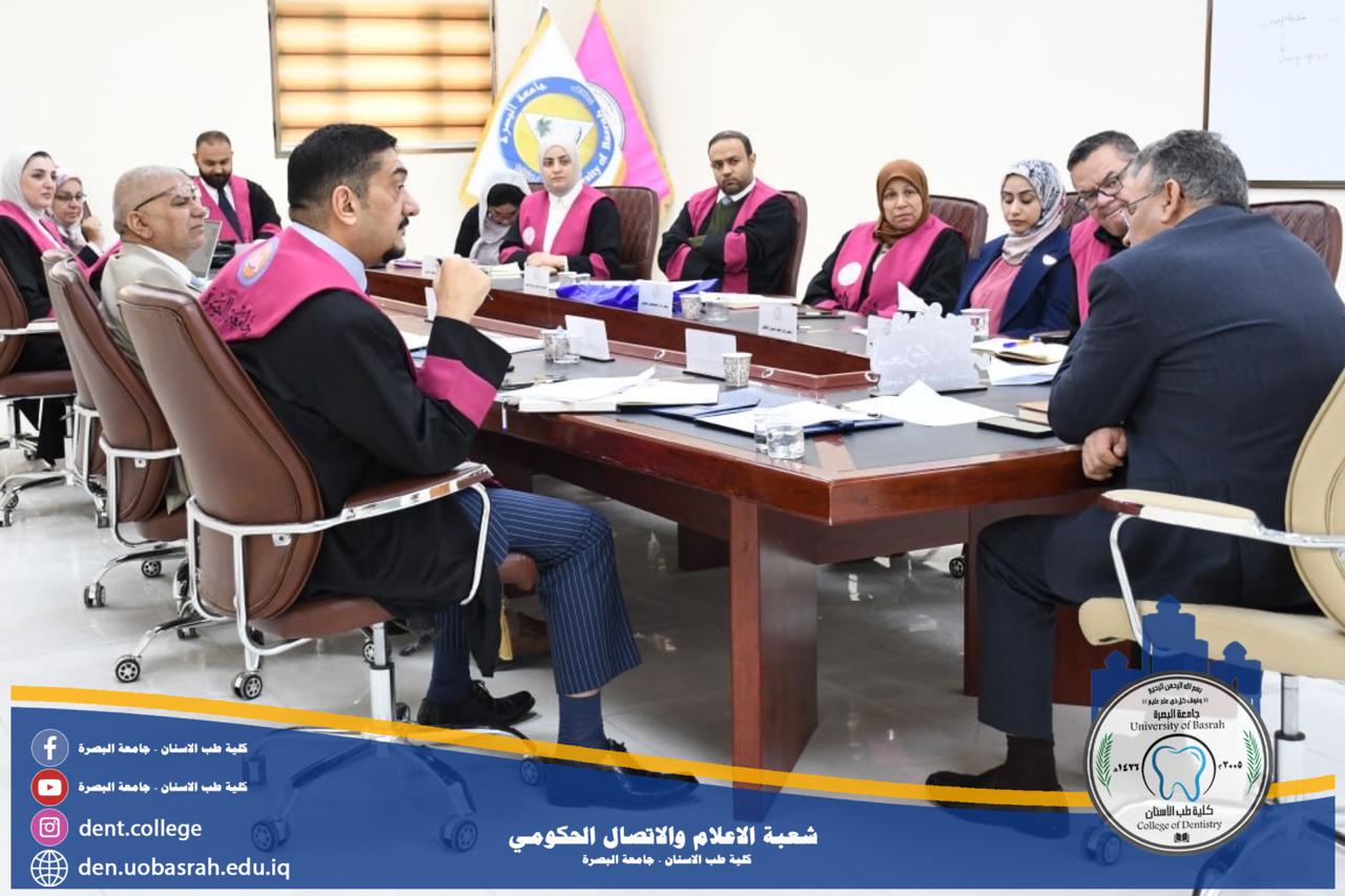 عقدت كلية طب الأسنان بجامعة البصرة اجتماع مجلسها الرابعة برئاسة عميد الكلية الأستاذ الدكتور أسعد محمد كاظم، لمناقشة التعليمات والضوابط الوزارية مع بدء دوام طلبة المرحلة الأولى للعام الدراسي 2025/2026.