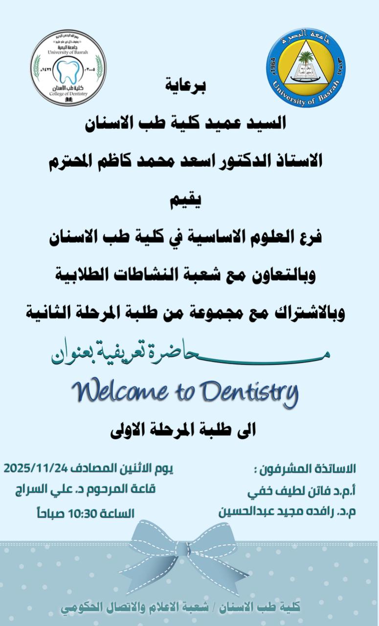 تقيم كلية طب الاسنان ندوة ارشادية حول الابتزاز الالكتروني بعنوان (الحد من ظاهرة الابتزاز الالكتروني وحماية الموبايل)