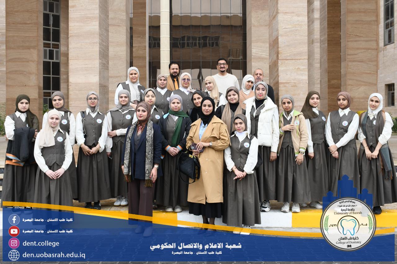 استقبلت كلية طب الأسنان في جامعة البصرة مدرسة زهور الحياة الأهلية للبنات ضمن برنامج الزيارات العلمية الهادفة إلى تعزيز التواصل بين التعليمين المدرسي والجامعي.