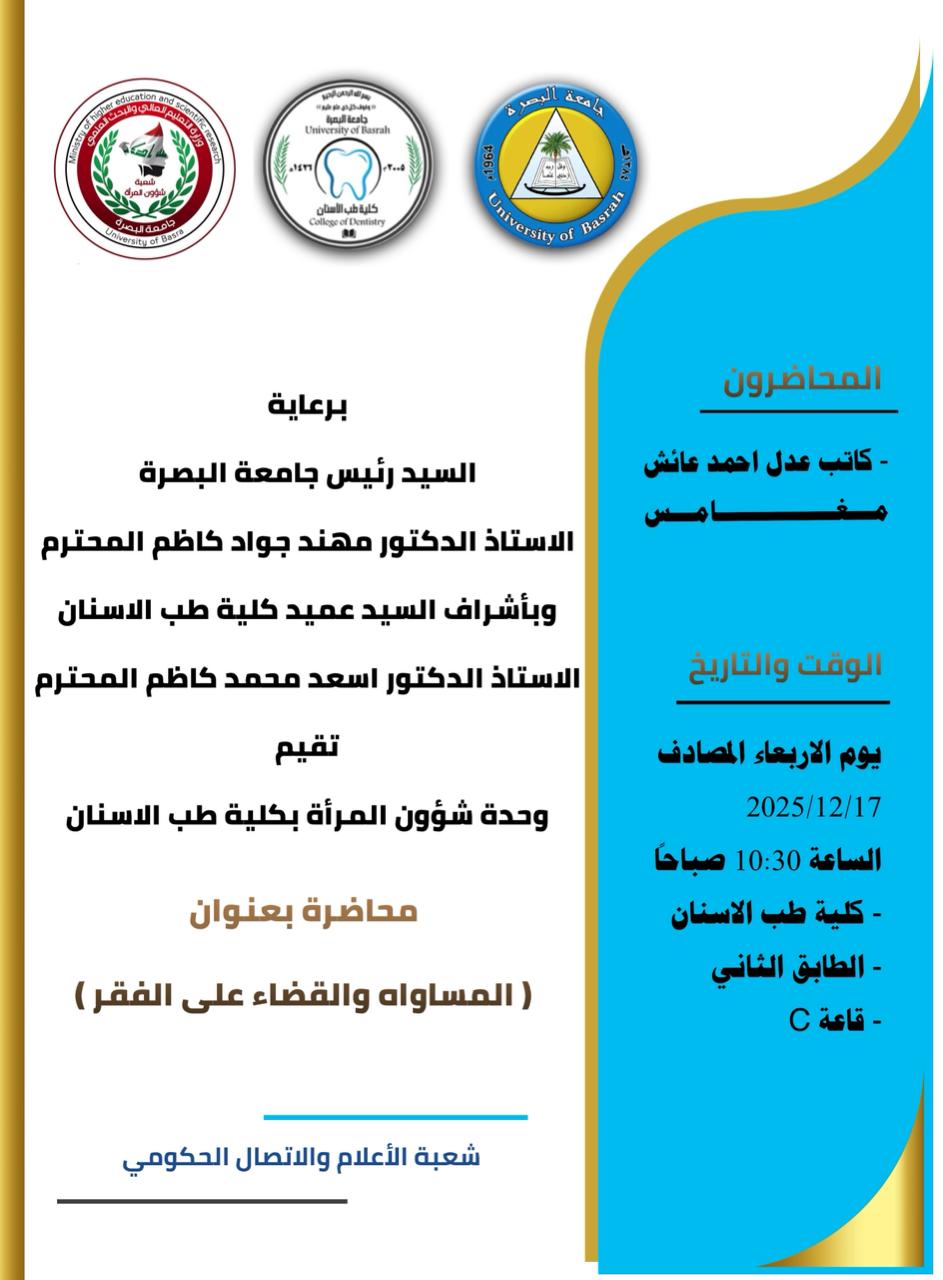 تقيم كلية طب الاسنان محاضرة بعنوان (المساواة والقضاء على الفقر)