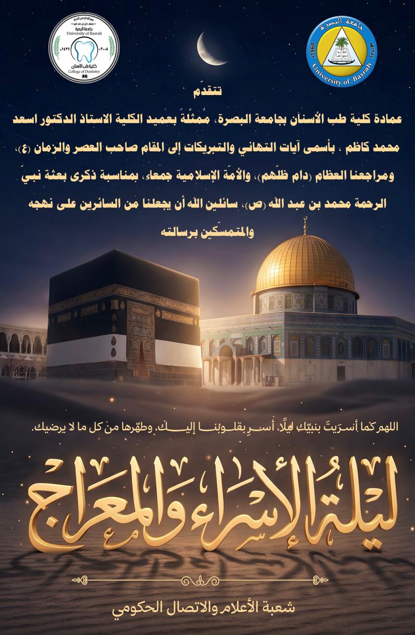 تهنئة عمادة كلية طب الاسنان بمناسبة حلول ليلة الاسراء والمعراج