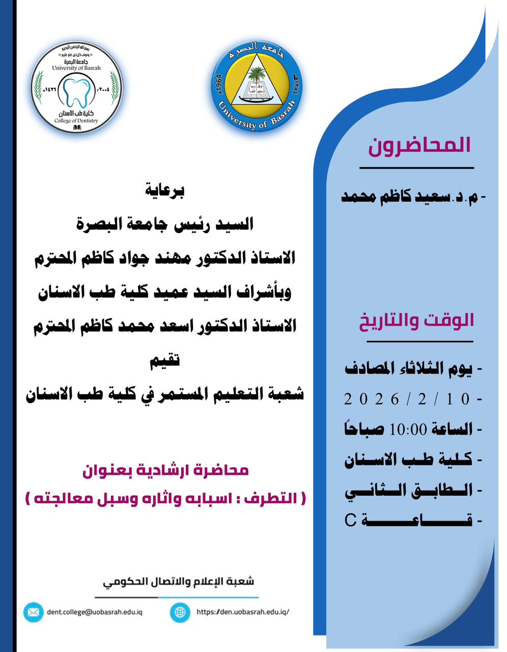 تقيم كلية طب الاسنان محاضرة ارشادية بعنوان (التطرف اسابابه وآثاره وسبل معالجته)