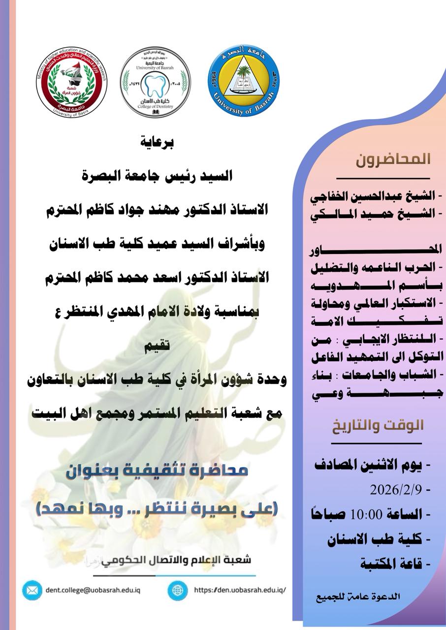 تقيم كلية طب الاسنان محاضرة تثقيفية بعنوان (على بصيرة ننتظر ... وبها نمهد)